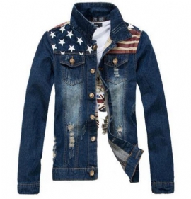 Džínový Kabát S Dlouhým Rukávem A Kapucí
