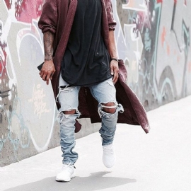 Zničené Džíny S Bočním Zipem S Dírou Pod Kolena